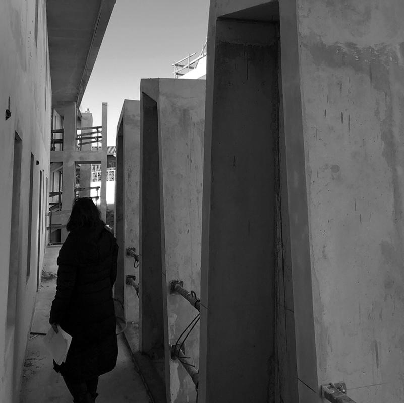 Les parties verticales recoupant les coursives permettent le passage des éléments techniques et se développent comme des arbres, support d'une canopée construite.